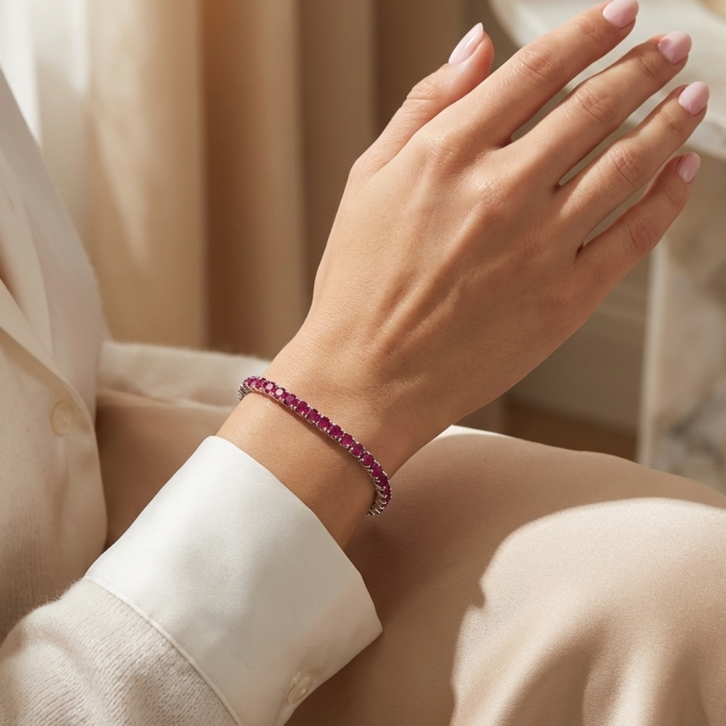 MANDARIN GARNET BRACELET IN WHITE GOLD RHODINATED 18K